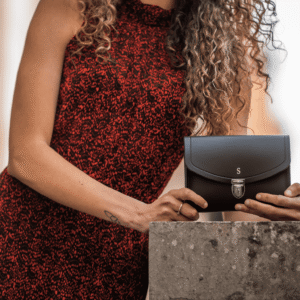 – Slim leather shoulder strap, detachable depending on occasion